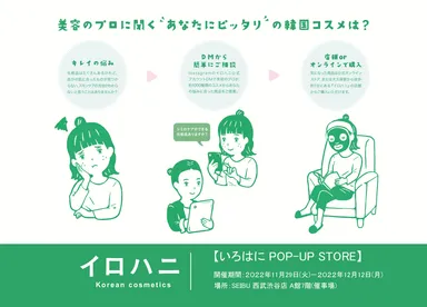 韓国コスメセレクトショップ「イロハニ」が西武渋谷店の催事場に POP UP STOREを11/29~12/12に開催
