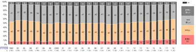<調査レポート> 「四半世紀の生活者の変化をみる」 現在の暮らし向き“非常にらく+ややらく”が 1993年53% → 2018年60%に