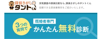 浮気・不倫調査に最適な探偵社を30秒で簡単無料診断 「探偵さがしのタントくん」お悩み相談室に新トピック追加