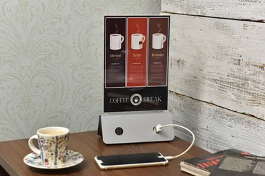 メニュースタンド+スマホ充電バッテリーで集客UP! 「メニューバ menu-ba」5月9日新登場