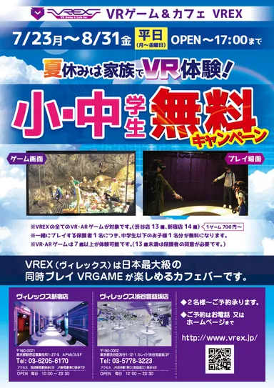 最新VR体験とレストランの融合「VR Game&Cafe Bar VREX」 夏休み期間中、小中学生を対象にVR無料体験キャンペーンを実施