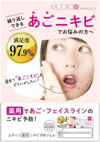 4,000名様にサンプル無料提供! あごニキビ専用「薬用ホワイトクリアゲル MUDICO」 ドラッグストアショーにて展開
