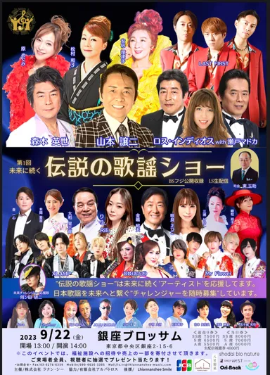 世代関係なくステージも会場もお茶の間も楽しめる イベント未来伝説をシリーズ化! 第一回 未来に続く『伝説の歌謡ショー』 銀座にて2023年9月22日に開催 2023年12月中旬BSフジにて放送予定