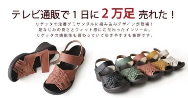 テレビ通販で1日に2万足売れた「リゲッタ」の 『日本製 編み込みベルトサンダル』に好評の声が続々!