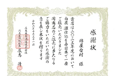 屋台がずらりと並ぶ「錦屋台村」が西日本で一番多く 辛口酒『白鹿 灘仕込』を販売し京都錦市場で初めて感謝状授与!