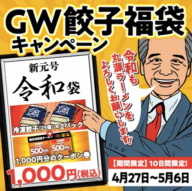 新元号“令和”をお祝いして、GW餃子福袋キャンペーンを実施!! 全国の丸源ラーメンにて4月27日(土)~5月6日(月)販売決定!