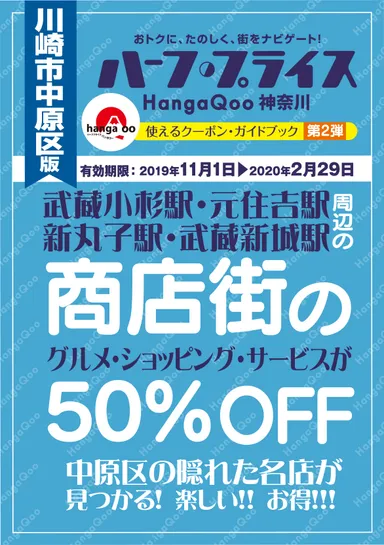 街歩きが楽しめる!地元で人気店の商品やサービスが半額になる うれしいクーポン&ガイドブック「ハーフ・プライスHangaQoo」 2019年秋、川崎市中原区版の発行が決定!!