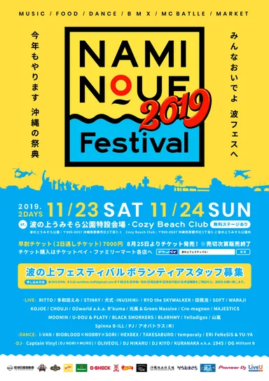 NAMINOUE Festival 2019が11/23(土)-11/24(日)に開催!! 早割チケットが8月25日(日)より発売開始!! 出演アーティストも発表!!