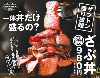 お肉の希少部位ザブトンを“丼だけ”盛っても980円! ランチタイム限定メニュー『ざぶ丼』を7/16にスタート