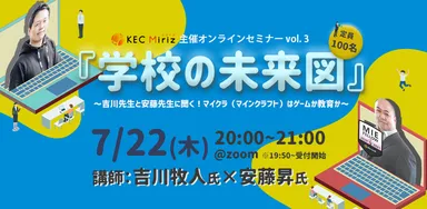 KEC Miriz、マイクラはゲームか教育か ~吉川先生と安藤先生に聞く『学校の未来図』~ 2021年7月22日(祝木)20時~21時にオンラインで開催