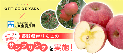 【JA全農長野×OFFICE DE YASAI】 “11(いい)月22(ふじ)日は長野県りんごの日” りんごの日に合わせ、企業のオフィス&量販店・カフェで長野県産りんごの冷蔵サンプリングを実施!