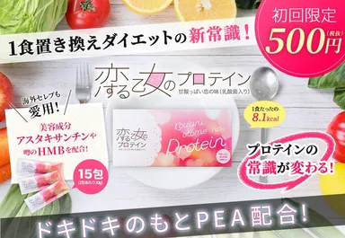 置き換えダイエットの新常識!恋活全力応援サプリ 「恋する乙女のプロテイン」 初回限定500円で5月26日に新発売