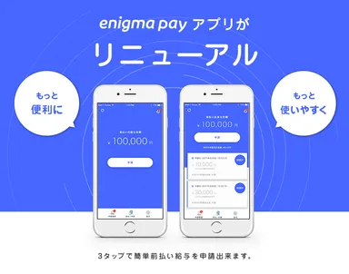 前払給与サービス『enigma pay(エニグマペイ)』 iOS & Android版アプリのデザインをリニューアル