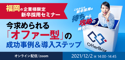 福岡企業限定の新卒採用セミナー「今求められる『オファー型』の成功事例&導入ステップ」を開催します