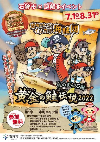 ~スマホを活用して謎を解く!~ 石狩市周遊×謎解きイベント「謎解きめぐり!イシカリ海賊団 鮭のまち石狩 黄金の鮭伝説2022」第1章 本町エリア編 2022年7月1日(金)~2022年8月31日(水)に開催!