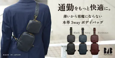 手ぶらで快適&薄くてスマート!ビジネスマンが使いやすい スーツのための本革3wayボディバッグ 【B4B(Bag for Business)】1/18~Makuakeにて先行販売開始