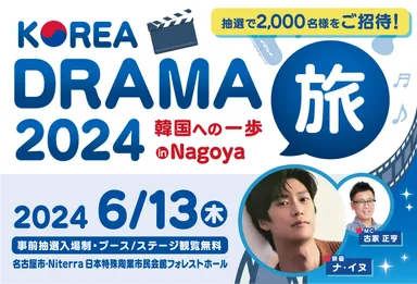 2,000名様無料招待! 韓国人気俳優ナ・イヌをスペシャルゲストに迎え 「KOREA DRAMA旅 2024 韓国への一歩 in Nagoya」を 2024年6月13日(木)に開催!