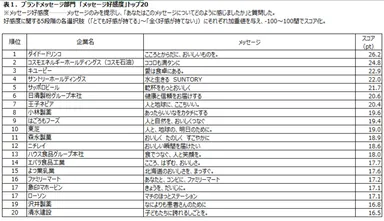 [ブランドメッセージ部門]メッセージ好感度の首位は、