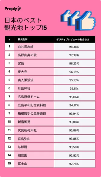 【調査報告】日本の観光名所、満足度ランキングを発表