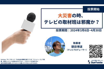 大災害、テレビの取材班は邪魔か?Surfvoteで意見を募集します