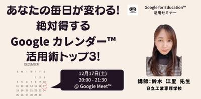 12/17(土)教職員向けICT活用セミナー「あなたの毎日が変わる!絶対得する Google カレンダー活用術トップ3!」を開催
