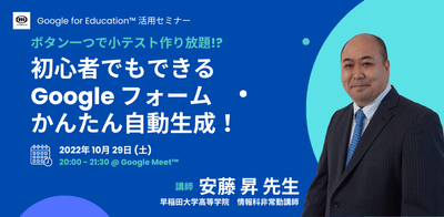 10/29(土)教職員向けICT活用セミナー「初心者でもできる Google フォーム かんたん自動生成!」を開催