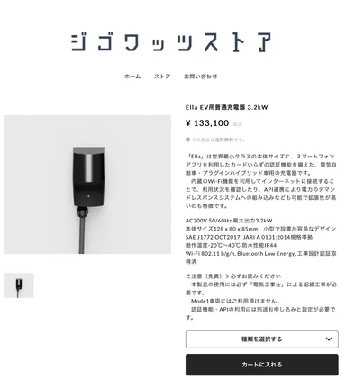 ジゴワッツ、EV充電器「Ella」の直販を開始 「ジゴワッツストア」オープン