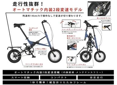 オートマチック内装2段変速搭載で走行性抜群! 1秒で簡単!コンパクトに収納可能! 瞬時に折りたためるX型BIKEのNEWモデル発売