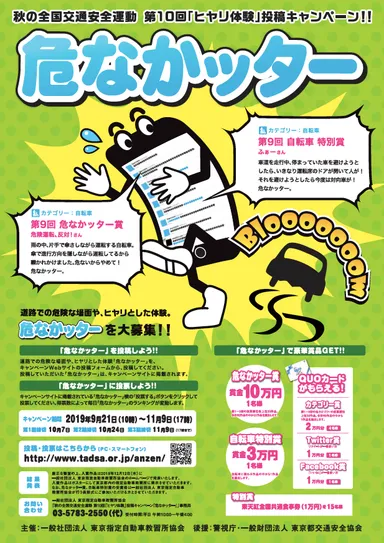 最高賞金10万円!道路での危険な場面やヒヤリとした体験募集! 秋の全国交通安全運動 第10回「ヒヤリ体験」投稿キャンペーン!! 『危なかッター』を開催