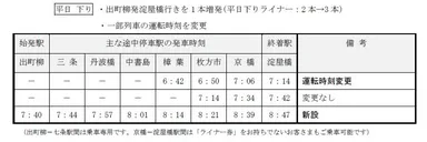 9月15日(土)初発から京阪線のダイヤを変更します