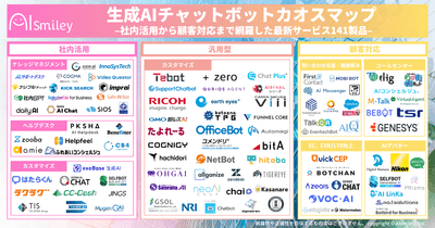 アイスマイリー、生成AIチャットボットカオスマップを公開!–社内活用から顧客対応まで網羅した最新サービス141製品–