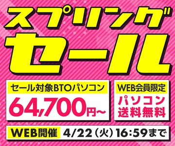 パソコン工房WEBサイト、セール対象BTOパソコンを64,700円からラインナップした『スプリングセール』開催中