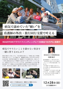 “「行きたい」をあきらめない社会へ”‐医療従事者による完全プロデュース型のサービスで外出・旅行を伴走させていただきます。株式会社Gritが、READYFORにて12月28日までクラウドファンディングに挑戦中!!