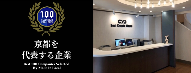 ソウルクリエイトミュージック 『京都を代表する企業100選』に選出。