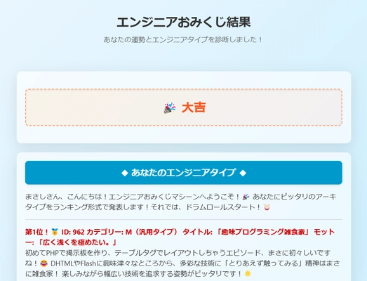 AIがエンジニア運勢を占うおみくじサービス「テックジ」 結果画面を大幅刷新したバージョンアップを正式リリース