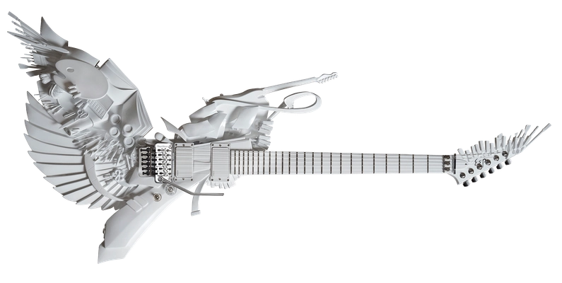 初音ミク16周年キービジュアルに描かれた創作の羽根を モチーフにした世界に一本だけのギター、 「創作の翼 -Wings Of Creation-」の 抽選販売の申し込みが遂にスタート