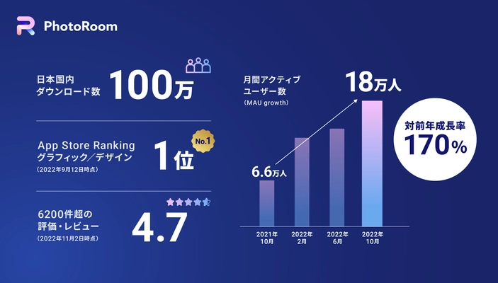 PhotoRoom 日本国内で100万ダウンロードを突破!MAU対前年成長率 170%を記録