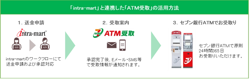 セブン・ペイメントサービスとNTTデータ イントラマートが 「ATM受取」と「intra-mart(R)」の機能連携を開始 自治体・企業から個人への資金決済をデジタル化し 送金業務の効率化を実現