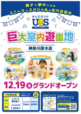 本厚木駅より徒歩3分! 親子で夢中になる室内遊園地『キッズランドUS 神奈川厚木店』 12/19(金)グランドオープン!