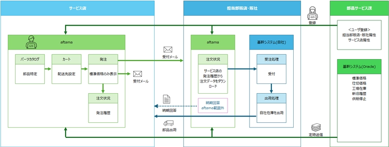クラウド型パーツカタログ公開サービス「aftama」にて 販売店とサービス店間の純正部品発注機能を実装