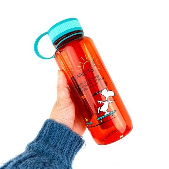 クリアなレッドカラーに、スケボーをするスヌーピー&ウッドストックのデザインのドリンクボトルが登場です。