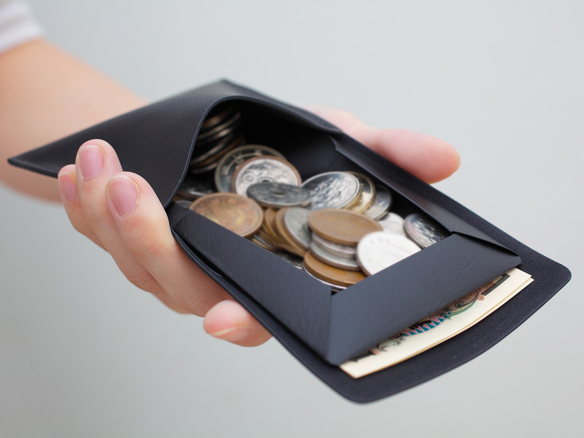 収納物 :硬貨 最大40枚程度/紙幣 最大20枚程度/カード収納 なし