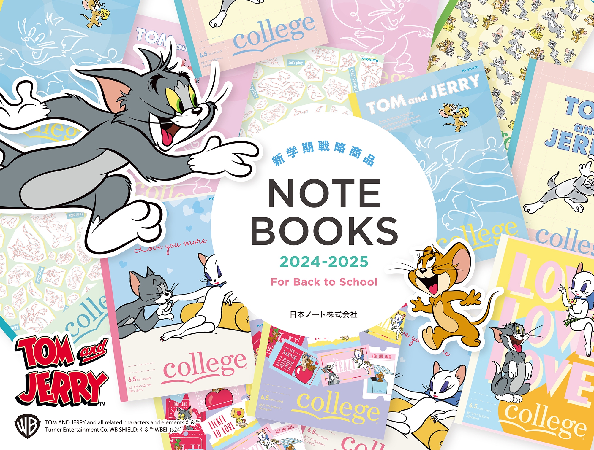 この度、人気キャラクター柄パックノート『トムとジェリー hang out』5冊束を2024年10月4日より、『トムとジェリー pretty cat』3冊束を2024年12月2日より発売いたします。
