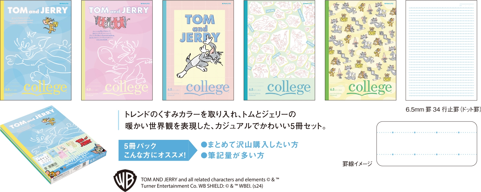 製品名 :『トムとジェリー hang out』5冊束 6.5mmドット罫