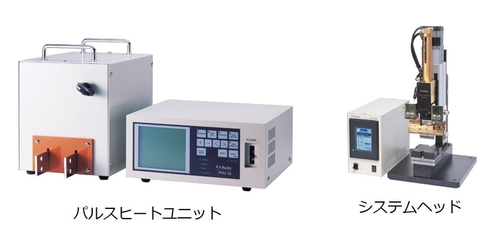 パルスヒートユニットは加圧ヘッドに搭載した、小型の金属製ツール(ヒータチップ)に電流を流して抵抗発熱させ、ヒータチップを接合対象物に押し当てて、あらかじめ設定した温度プロファイルで局所加熱と精密な加圧をおこなうことによりスポット的に接合する装置です。