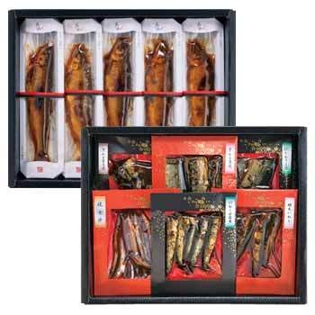 あゆ甘露煮5尾、さんま蒲焼50g、さんま有馬煮45g、