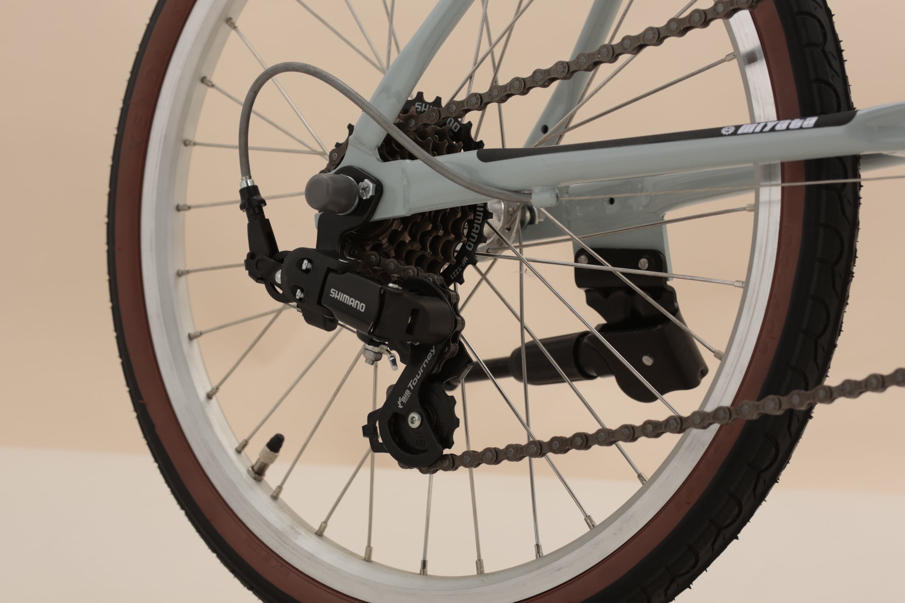 変速ギアには「シマノ Tourney」を採用。外装7段の変速がスポーティ且つ快適な走りを実現します。