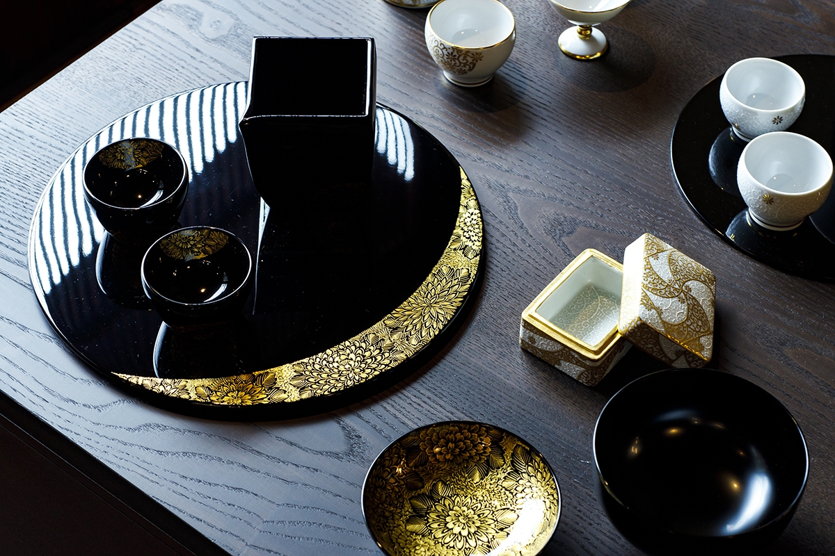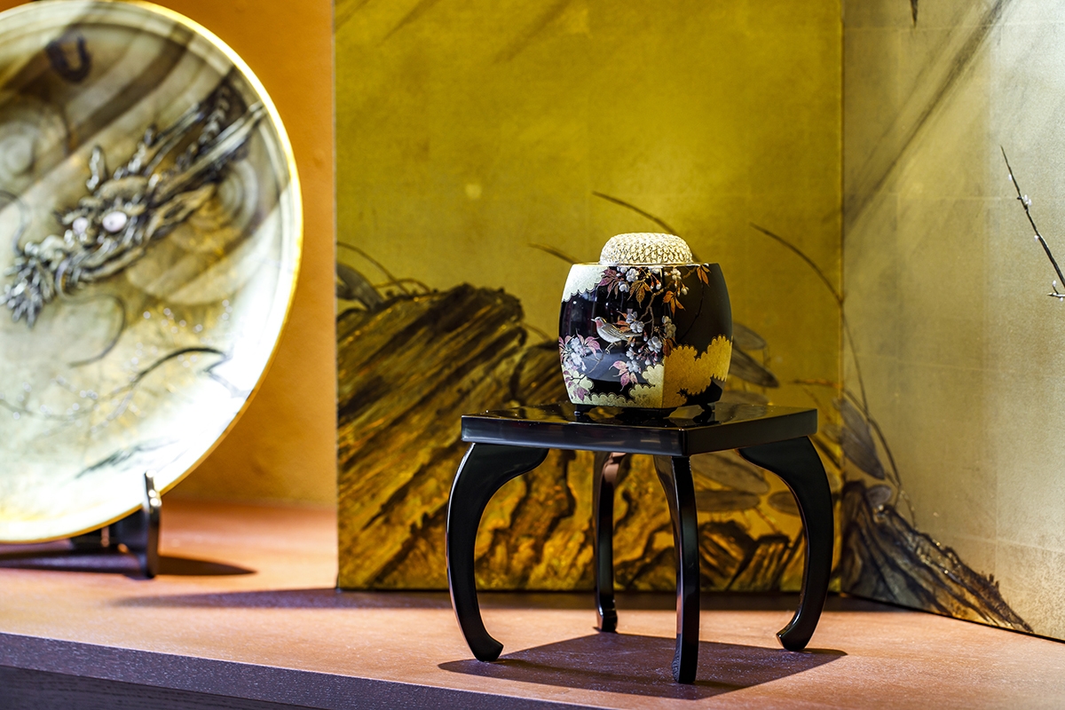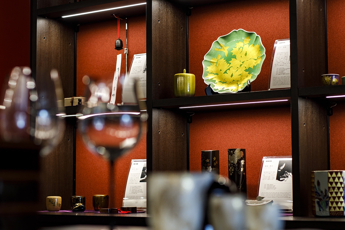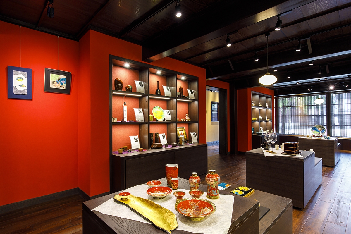 『金澤しつらえ』は、石川県ゆかりの伝統工芸を扱ってきた箔一のフラッグシップとして、地域の代表的な高質工芸品を日本全国、さらには世界へ向けて発信するギャラリー・ショップです。ショーケースに入れない美術館といったスタイルで、重要無形文化財保持者(人間国宝)や文化勲章受章者、伝統工芸士をはじめとする選りすぐりの作家様の作品を展示し、そのオーラをじかに感じていただくことができます。また、季節にあわせた企画展示なども予定しています。