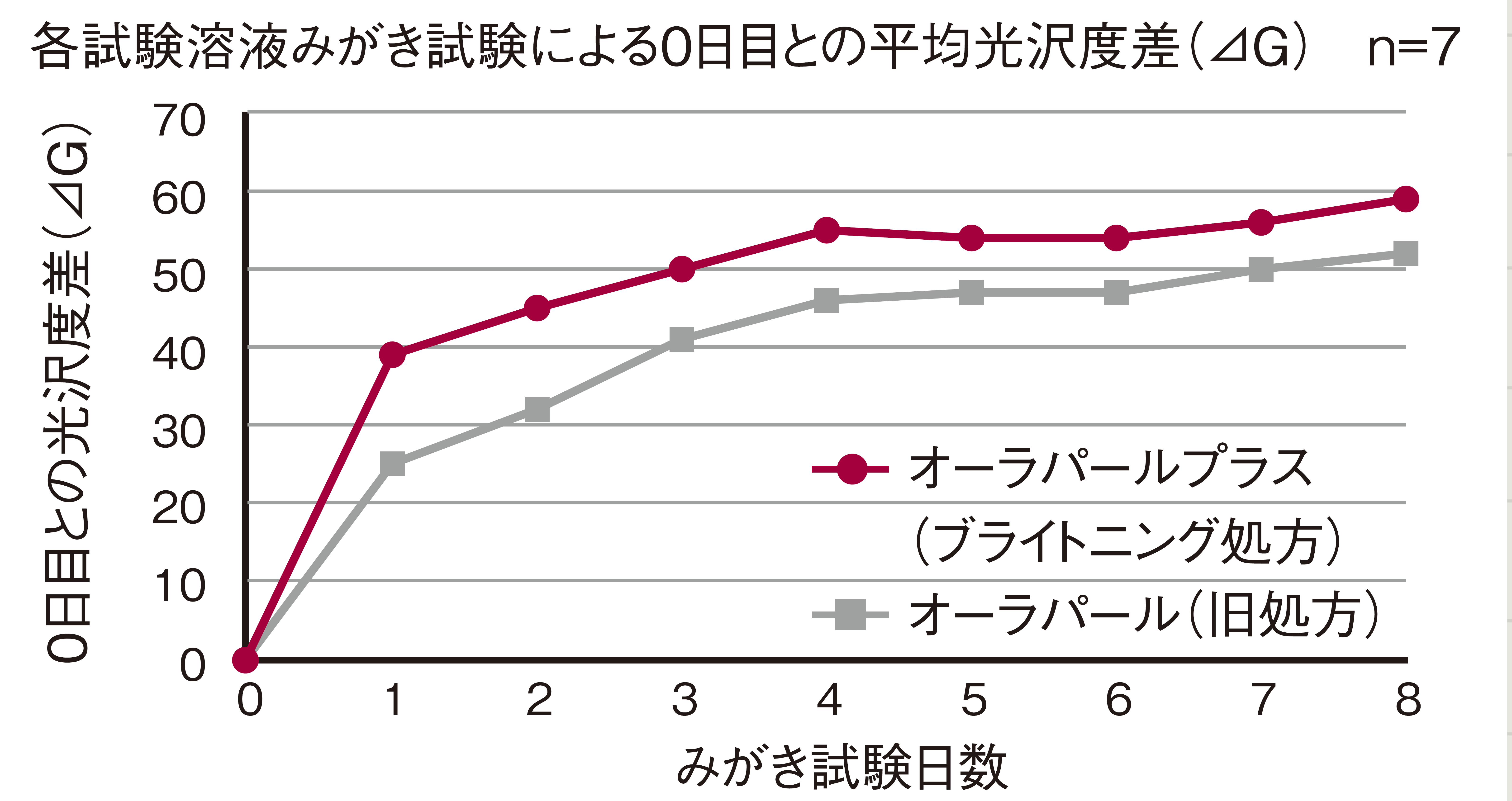 オーラパールプラスで8日間磨いた際の光沢度の違い