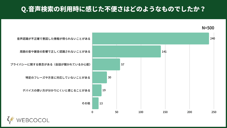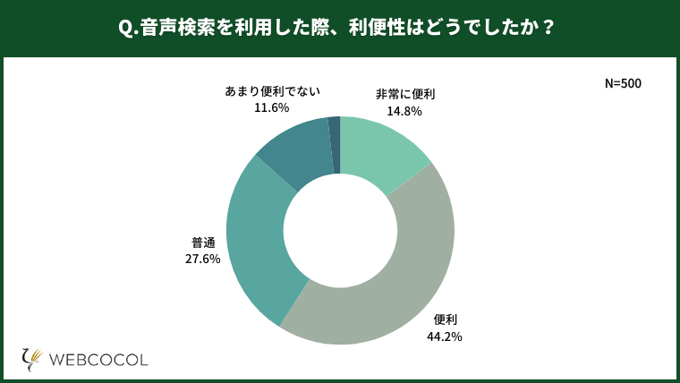 SEO対策会社「ウェブココル」( https://challenge-seo.jp/ )は、10代~60代の音声検索の利用経験のある500名に「音声検索の使いやすさ、正確性、利便性」についての利用者体験調査を実施しました。